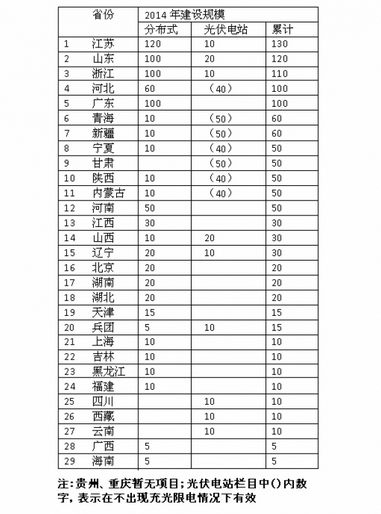 ??? 中國國家能源局為落實《國務院關于促進光伏產(chǎn)業(yè)健康發(fā)展的若干意見》,明確光伏發(fā)電目標和任務,將對中國光伏發(fā)電實行年度規(guī)模管理,在綜合考慮各省(區(qū)、市)太陽能資源條件、電力市場以及各地區(qū)配套政策措施和實際工作積極性等因素基礎上,研究提出了2013、2014年度中國光伏發(fā)電規(guī)模預安排方案。