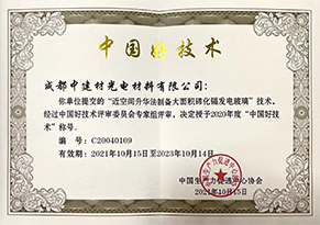 成都中建材碲化鎘發(fā)電玻璃技術(shù)獲得中國建材行業(yè)技術(shù)發(fā)明一等獎