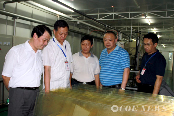 ????? 8月9日下午15:40分,蚌埠玻璃工業(yè)設(shè)計研究院院長彭壽一行蒞臨公司檢查指導(dǎo)工作并進(jìn)行了座談。公司董事長兼總經(jīng)理侯仁義、常務(wù)副總謝義成、副總經(jīng)理兼總工程師葛林、行政副總經(jīng)理劉家林、財務(wù)總監(jiān)王泓濤等陪同參觀檢查,雙流縣副縣長廖維忠、雙流縣新能源推進(jìn)辦主任蒲貴森等參加座談。