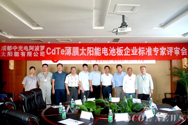 ????? 9月3日,公司隆重召開CdTe薄膜太陽能電池板企業(yè)標(biāo)準(zhǔn)專家評(píng)審會(huì)。中國(guó)電子工業(yè)標(biāo)準(zhǔn)化技術(shù)協(xié)會(huì)副秘書長(zhǎng)龐春霖、蚌埠玻璃工業(yè)設(shè)計(jì)研究院科技管理部部長(zhǎng)魏曉俊、四川鑫炬礦業(yè)資源開發(fā)股份有限公司總工程師侯立瑋、四川阿波羅太陽能科技有限責(zé)任公司總工程師守炳生、副總工程師邢文魁、成都中光電阿波羅太陽能有限公司常務(wù)副總謝義成、品質(zhì)保障部部長(zhǎng)王定椿、技術(shù)研發(fā)部副部長(zhǎng)劉映天等參加了會(huì)議。由龐春霖任專家評(píng)審會(huì)組長(zhǎng)。