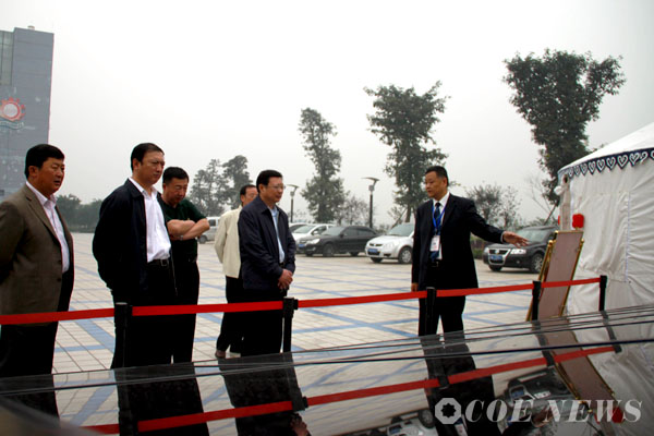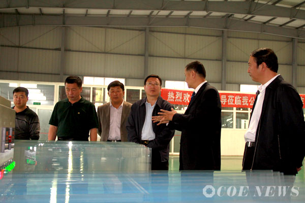 在公司領(lǐng)導(dǎo)的陪同下寇小平書記一行參觀5MW碲化鎘薄膜太陽能電池中試生產(chǎn)線