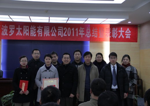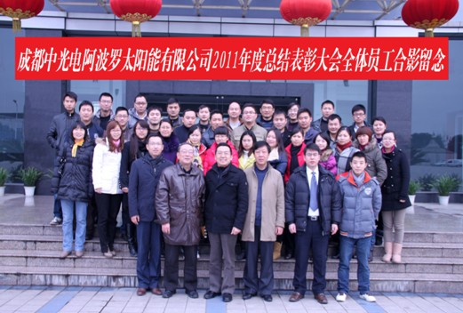 ?????? 2012年1月13日,成都中光電阿波羅太陽(yáng)能有限公司2011年度總結(jié)暨表彰大會(huì)在一樓大會(huì)議室召開,總經(jīng)理潘錦功、常務(wù)副總謝義成、財(cái)務(wù)總監(jiān)王泓濤、副總工程師傅干華及全體員工參加了會(huì)議。會(huì)議由綜合管理部副部長(zhǎng)彭小風(fēng)主持。